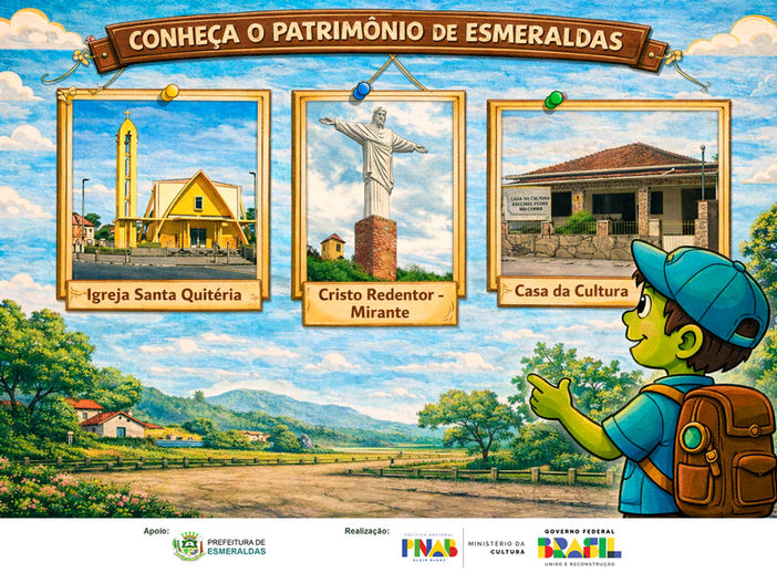 Acompanhe o Esmeraldino e sua turma numa viagem de aventura e conhecimento pelos caminhos de Esmeraldas. Nesse passeio incrível você vai saber um pouco mais sobre o Patrimônio Cultural de nossa bela e histórica cidade.
